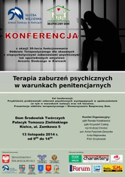 13 listopada 2014 r. w Pałacyku Tomasza Zielińskiego w Kielcach odbyła się konferencja pt. „Terapia zaburzeń psychicznych w warunkach penitencjarnych”, którą zorganizował Areszt Śledczy w Kielcach we współpracy ze Stowarzyszeniem Bezpieczny Dom. Konferencję zorganizowano z okazji 30-lecia funkcjonowania Oddziału dla skazanych z niepsychotycznymi zaburzeniami psychicznymi lub upośledzonych umysłowo Aresztu Śledczego w Kielcach oraz 25–lecia istniejącej w oddziale grupy AA „Serce”.