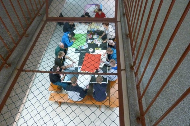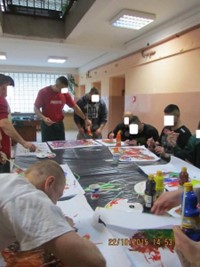 Wiele już pisaliśmy na temat naszych działań w Areszcie Śledczym w Kielcach, nasz projekt dobiega końca. Poznawanie nowych technik plastycznych, wspólna praca zespołowa, rozmowy toczące sie podczas zajęć, to wszystko przynosi zamierzone efekty. Praca ze sztuką pozwala na pełniejsze i swobodniejsze wyrażanie siebie, rozładowuje napięcie, pozwala odreagować tłumione emocje. Celem arteterapii jest tworzenie dróg wyjscia, a także rozwój kulturalny i emocjonalny skazanego.